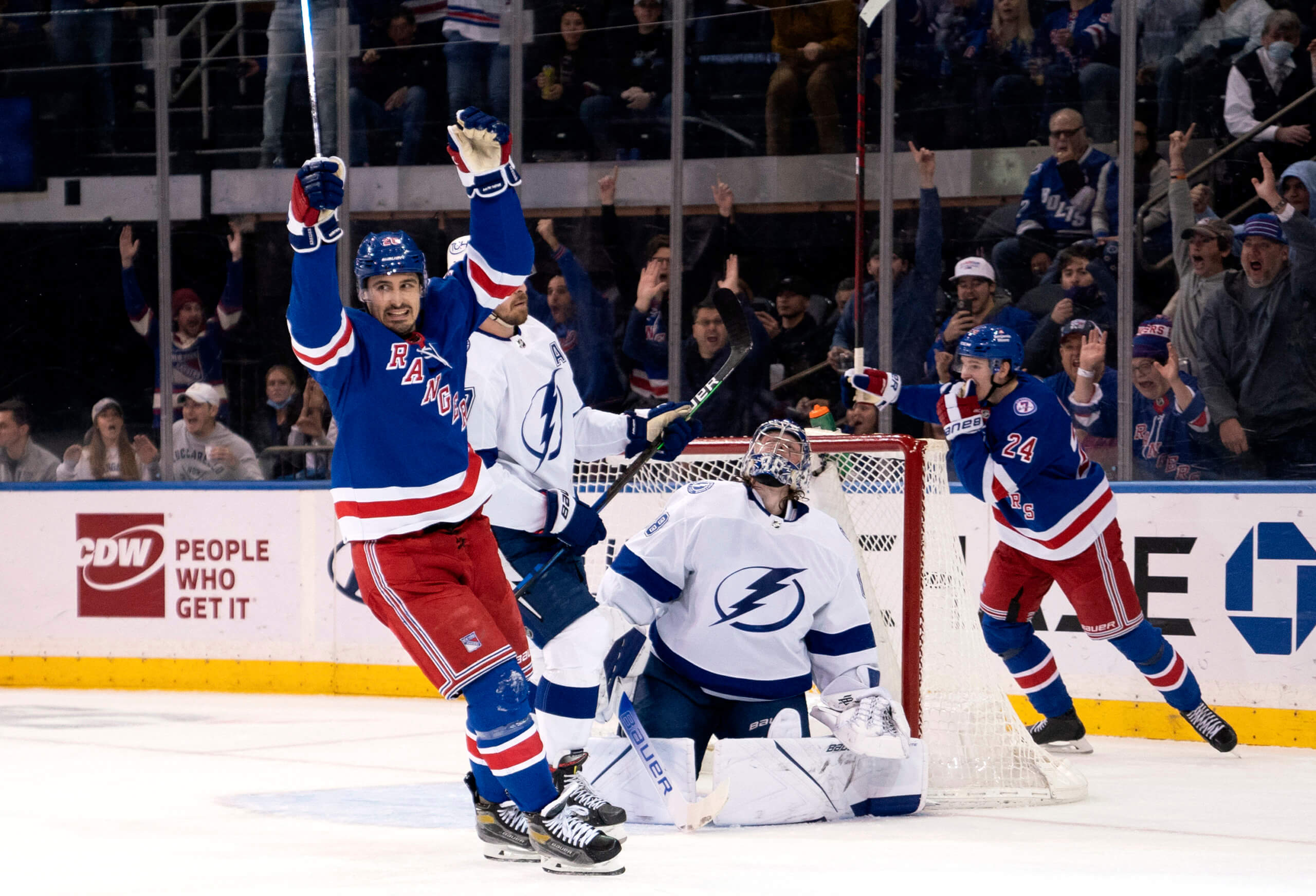 Mika Zibanejad's goal gives Rangers win over elite Lightning The Lightning challenged for goalie interference, but the call was upheld and the Rangers earned a power play. With the goal, Trouba tied his career-high at 10 — set in 2013-14 — to lead all ...