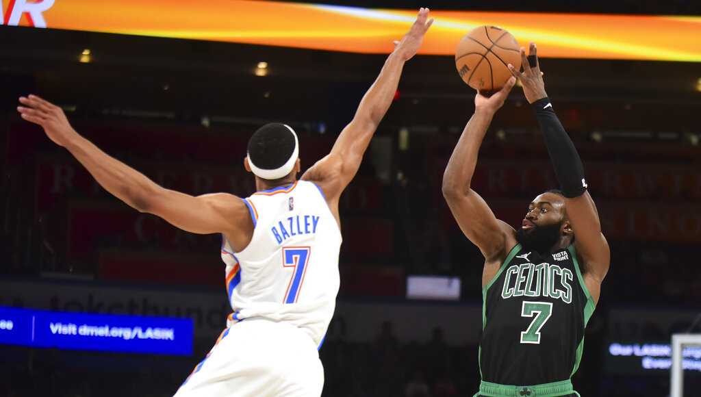 Celtics vs. Thunder takeaways: Jayson Tatum continues to ... Maintaining it is another question, but the Celtics did what they were supposed to against a lottery-bound Oklahoma City Thunder team with a 111-105 victory at TD Garden Saturday night, improving to 9-8 on the season. Once again, the C's were led by Jayson Tatum, who is showing signs of snapping out of a serious shooting slump he found himself in.